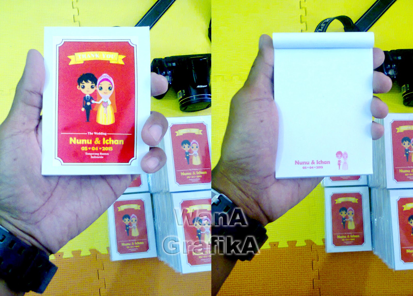 Dari dua gambar di atas semoga dapat menjadi gambaran ukuran sebenarnya dari souvenir blocknote produksi dari Wana Grafika. Potongan foto sebelah kiri adalah foto cover depan dan potongan foto sebelah kanan adalah foto bagian dalam (isi) ketika blocknote dibuka.
